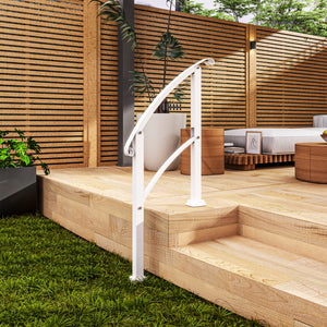 Homivas outdoor handrail is a versatile and flexible solution for improving safety and adding style to outdoor living. Adjustable angle from 0-45° suit 1 to 3 steps or even level surfaces. This stylish stair handrail features a powder-coated steel frame for smooth maintenance and an elegant curly side design for an attractive finishing touch. Enhance an extra layer of safety in your porch, deck or patio for those with mobility challenges.