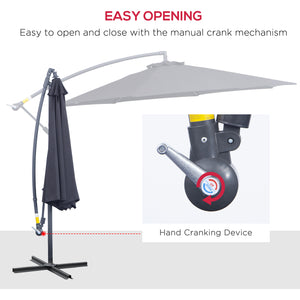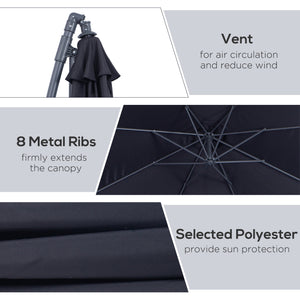 10' Deluxe Patio Umbrella Outdoor Market Parasol Banana Hanging Offset Sunshade Crank Cross Base Black