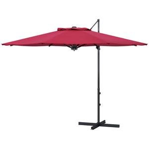 10 FT Cantilever Umbrella, Aluminum Hanging Offset Umbrella with 360°Rotation, Crank, Tilt, Cross Base, Red
