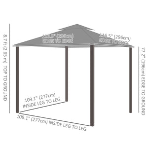 - • 10' x 10' outdoor gazebo canopy tent with a 9-foot tall peak