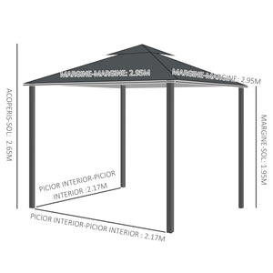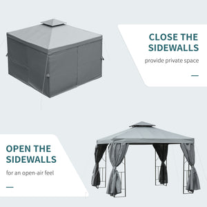 10' x 10' Patio Gazebo Outdoor, Canopy Shelter with Double-tier Roof, Pavilion Sidewalls for Garden Events, Dark Grey