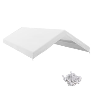 10 x 20ft Carport Replacement Canopy, UV Resistant Garage Car Cover with Ball Bungee Cords, White