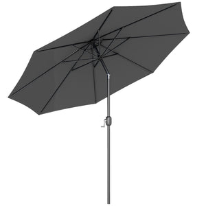 10' x 8' Round Market Umbrella, Patio Umbrella with Crank Handle and Tilt, Outdoor Parasol for Garden, Bench, Lawn, Grey