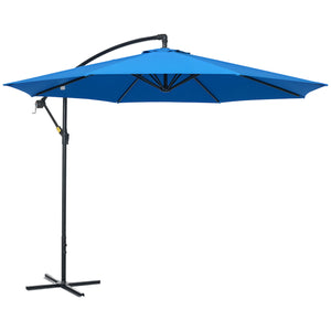 10ft Offset Patio Umbrella with Base, Garden Hanging Parasol with Crank, Banana Cantilever Umbrella Sun Shade, Blue