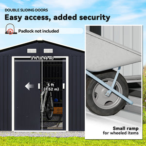 11' x 9' Metal Storage Shed Garden Tool House with Double Sliding Doors, 4 Air Vents for Backyard, Patio, Lawn Dark Grey