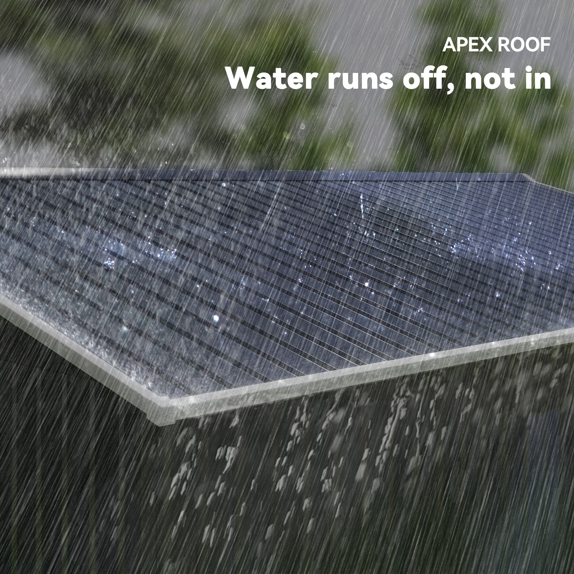 - • Sloped roof prevents moisture and rain from pooling
