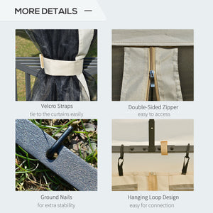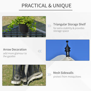 12' x 10' Outdoor Patio Gazebo Canopy with Double Tier Roof, Removable Mesh Sidewalls, Triangular Display Shelves, Beige