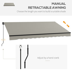 12' x 10' Retractable Awning, 280gsm UV Resistant Sunshade Shelter, for Deck, Balcony, Yard, Light Grey