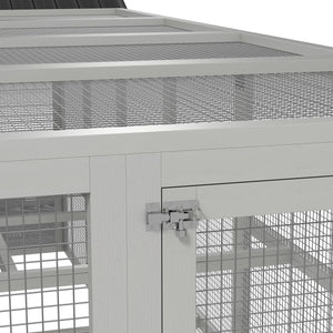 142" Outdoor Wooden Chicken Coop with Run, Ramps, Perches, Storage, Combinable Design for 6 - 10 Chickens, Grey