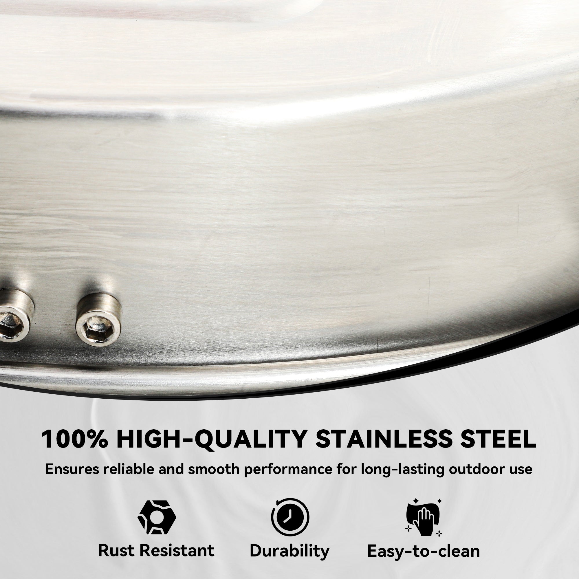 - • Rust-resistant stainless steel for long-lasting outdoor use