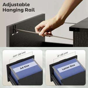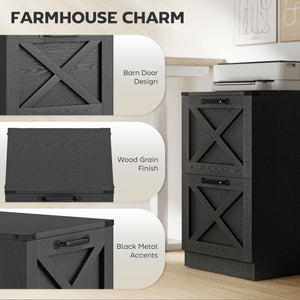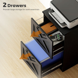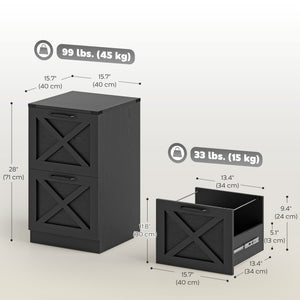 2 Drawer File Cabinet with Silent Slides, Vertical Farmhouse Filing Cabinet Fits Letter/A4 Size Home Office, Black
