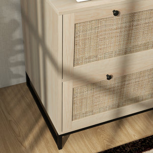 2-Drawer Filing Cabinet with Lock, Rattan File Cabinet with Adjustable Hanging Bar, Natural