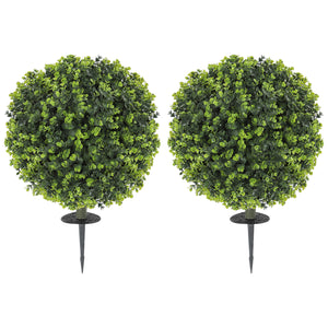 2 Pack 1.3ft Artificial Ball Eucalyptus Topiary with Ground Stake, UV Resistant Faux Greenery for Indoor Outdoor