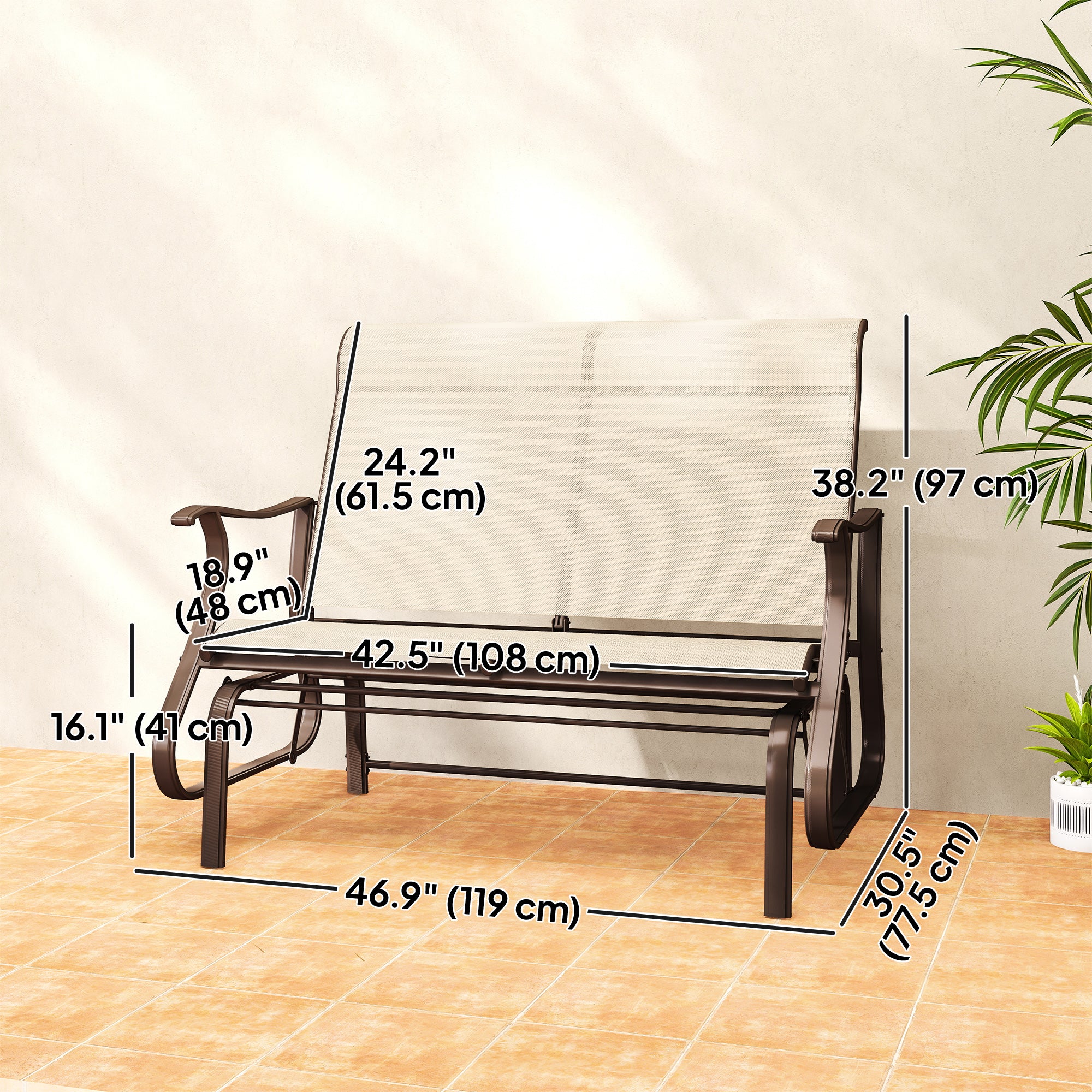 2-Person Outdoor Glider Chair, Patio Glider Rocking Chair with Mesh Seat and Backrest, Steel Frame for Outdoor, Backyard, Khaki