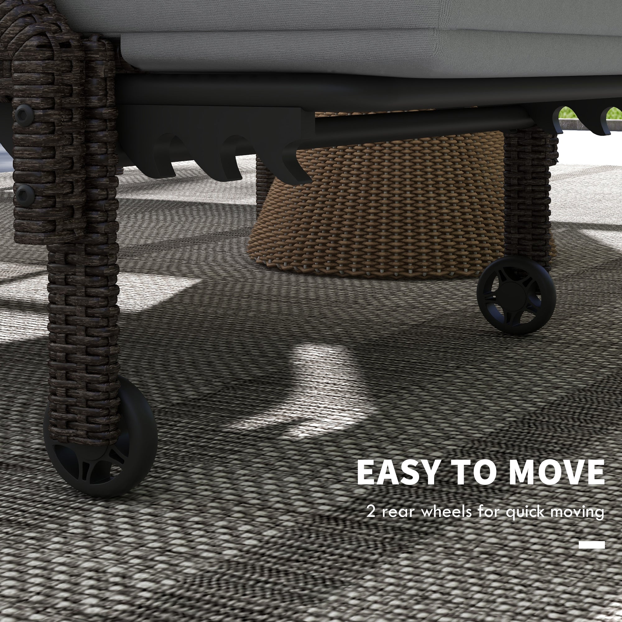 2 Piece Wicker Chaise Lounger PE Rattan Outdoor Lounge Chair Recliner with Adjustable Backrest and 2 Wheels, Grey