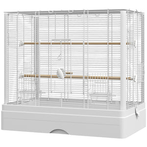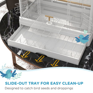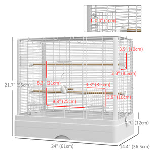 22" Bird Cage for Budgie Finches Canaries Love Birds with Wooden Stands, Slide-Out Tray, Handles, Food Containers, White