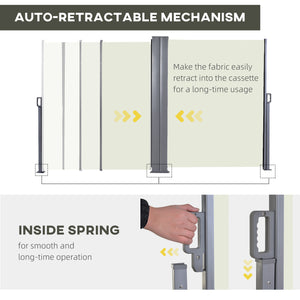 236" x 63" Outdoor Privacy Wall, Double Retractable Side Awning, Patio Screen for Garden, Balcony, Backyard, Cream White