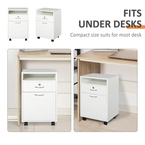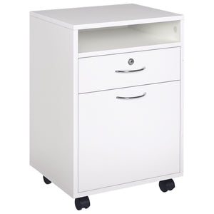 24" Vertical Filing Cabinet with Lockable Drawer, Mobile File Cabinet with 2 Keys, Wheels for Home Office, White