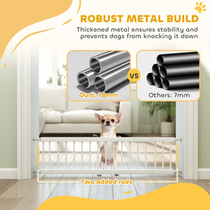 26"-37" Dog Gate, Adjustable Pet Gate, Fits 10" Tall with 2 Extension, Pressure Mount Kit for Stairs and Doorways, White