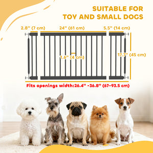 26"-37" Dog Gate, Adjustable Pet Gate, Fits 18" Tall with 2 Extension, Pressure Mount Kit for Stairs and Doorways, Black