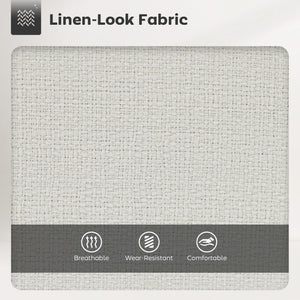 - • Linen-look fabric with thick, high-density foam offers comfort and support