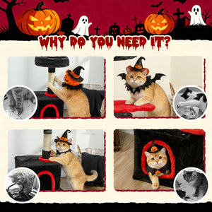 28" Gothic Cat Tree Tower with Plush Top Bed, Cozy Condo, Sisal Scratching Post, Perch, Dangling Ball, Red & Black