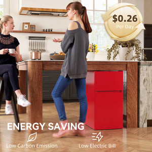 3.2 Cu Ft Compact Refrigerator, Mini Fridge with Freezer, Adjustable Shelves and Reversible Doors for Bedroom, Red