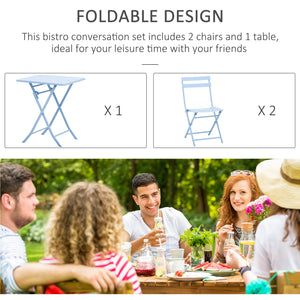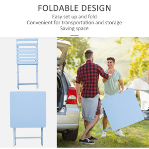 3 Pieces Garden Bistro Coffee Set Foldable Patio Chair & Square Table for Outdoor Yard Porch Poolside Balcony Blue
