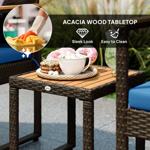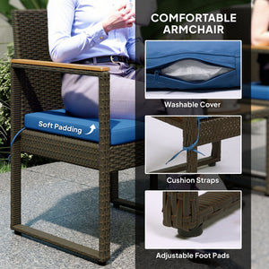 3 Pieces Wicker Patio Furniture Set, Rattan Bistro Set w/ Acacia Wood Table & Removable Cushions, Dark Blue