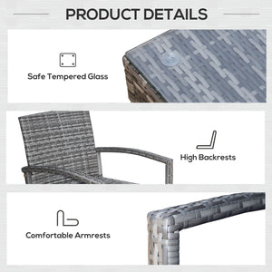 Our Homivas outdoor balcony furniture is the best choice for both comfort and quality. Solid steel frame construction, high-quality PE rattan, and polyester cloth with exquisite workmanship ensure lasting durability. The table comes with tempered glass for solid beverage placement, and the thickly padded cushions offer optimal comfort. The Homivas 3-Piece Rattan Chair and Table Set is essential for any backyard or patio setting to complete the look in comfort and style.