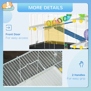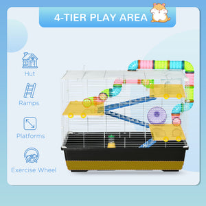 31" Large Hamster Cage, Small Animal House, Multi-storey Gerbil Haven, Tunnel Tube System, with Water Bottle, Exercise Wheel, Food Dish, Ramps, Black