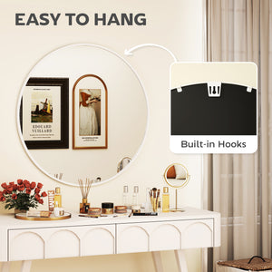 36" Round Mirror, Bathroom Wall Mirror with Metal Frame, Decorative Vanity Mirror for Living Room, Bedroom, White