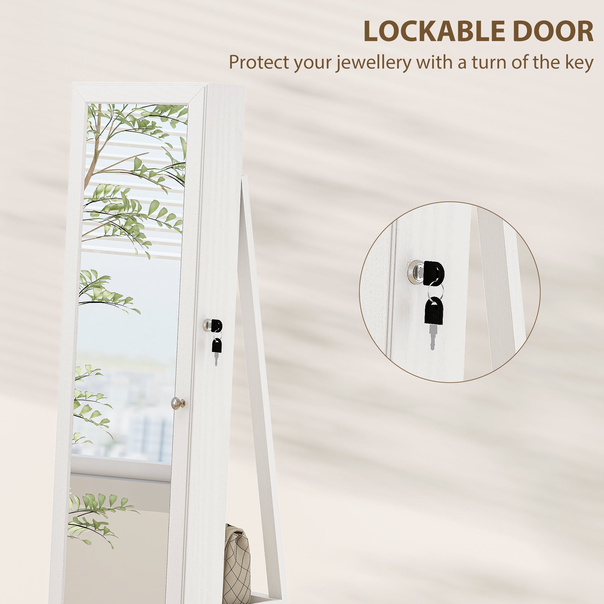 - • Lockable cabinet with 2 keys included keeps your jewellery safe