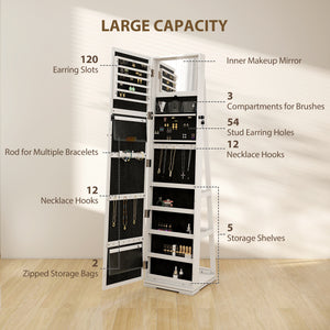 360° Swivel Jewelry Armoire, Lockable Mirror Jewelry Cabinet with Built-In Small Mirror, White