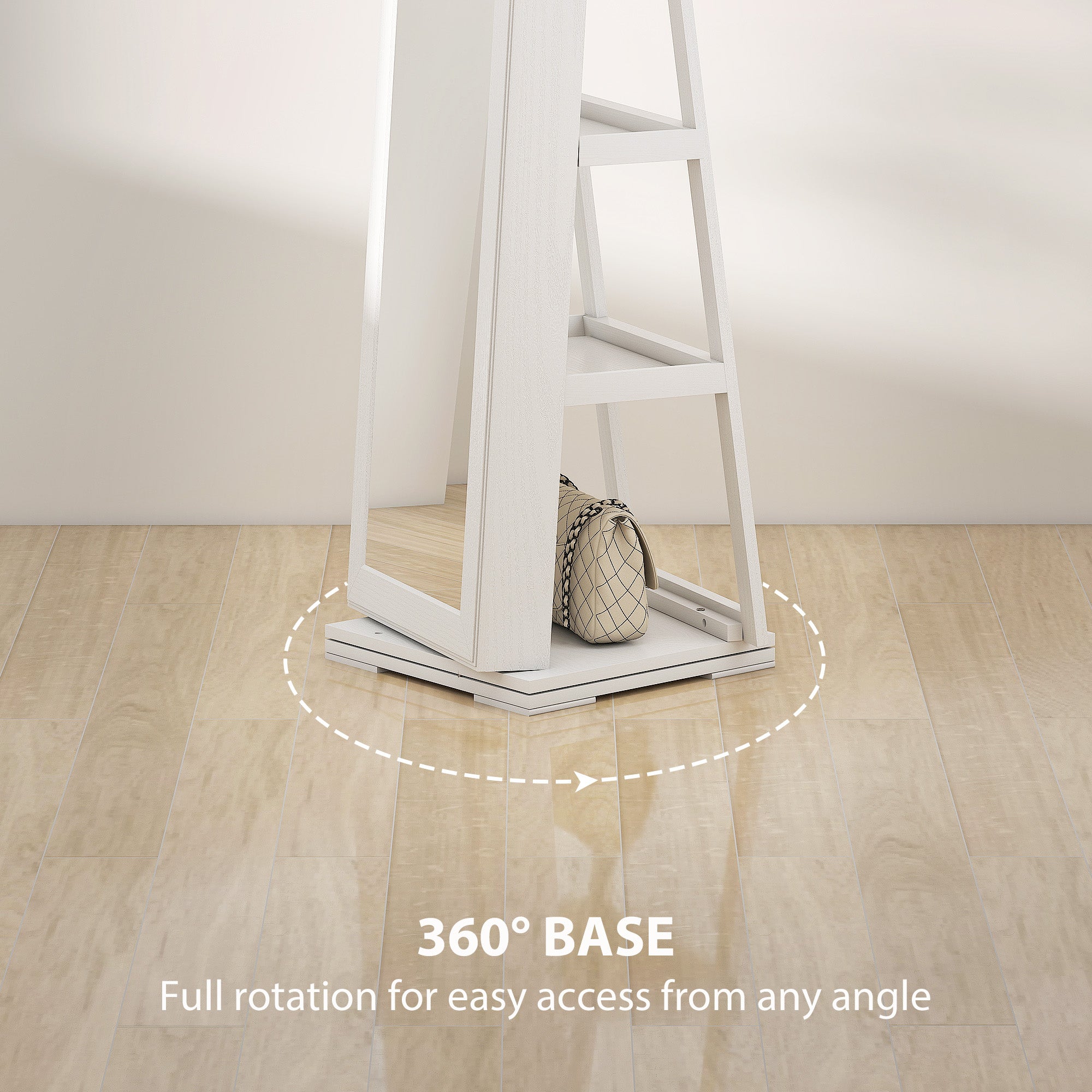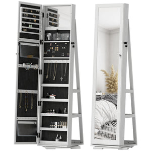 With this jewellery cabinet with a full-length mirror from Homivas, you can keep all of your jewellery beautifully displayed and well-organized. The 360° rotatable design allows you to admire your beauty from all sides. The interior has plenty of storage space and a transparent partition that will enable you to see all of your accessories at a glance, making daily dressing up a breeze. When not in use, lock items to prevent rust and keep them safe.