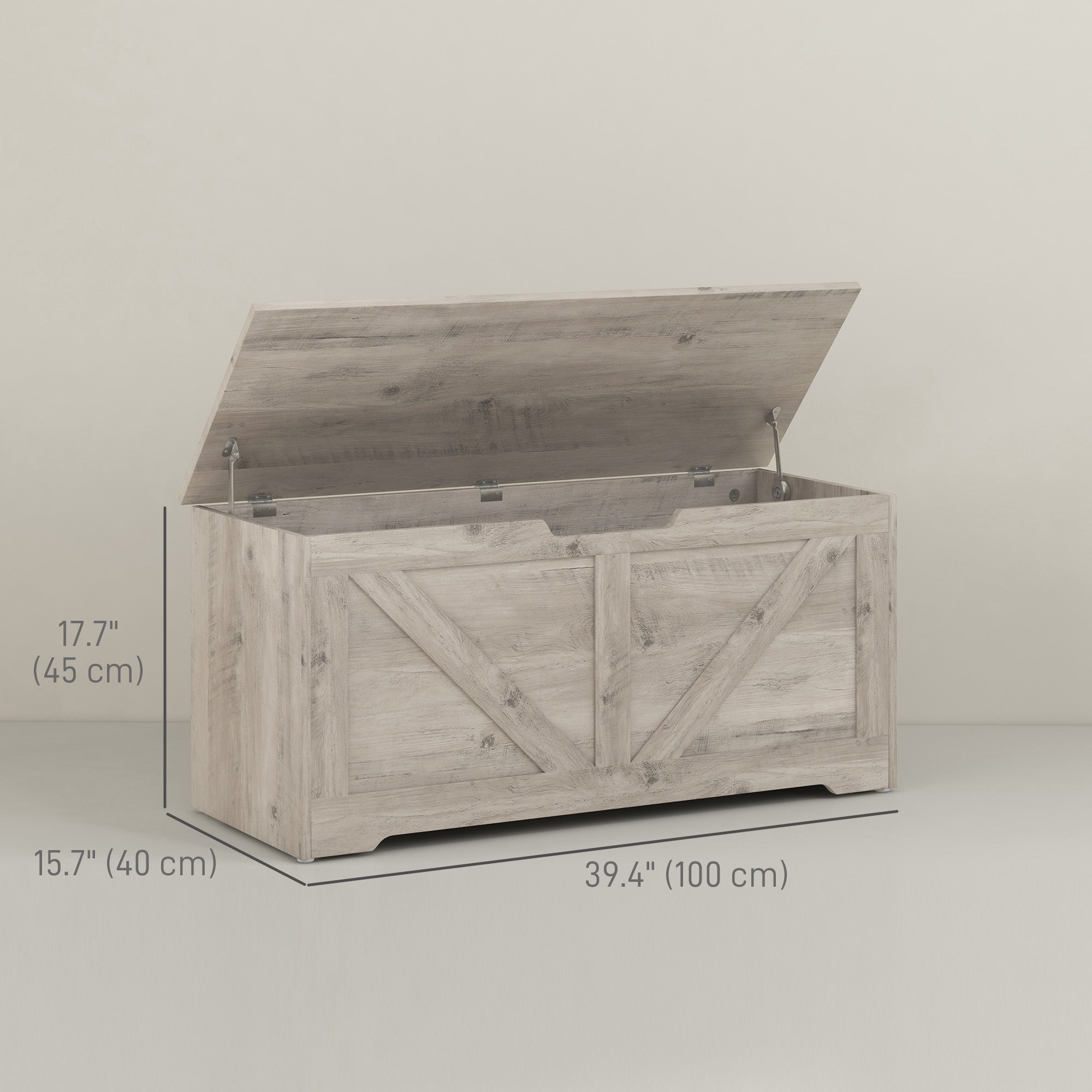 39.4 Inches Storage Chest, Storage Trunk with 2 Safety Hinges for Living Room, Grey Wood Grain