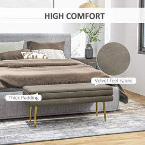 39" Storage Ottoman, Velvet End of Bed Bench with Steel Legs, Foot Stool with Storage for Bedroom, Living Room, Beige
