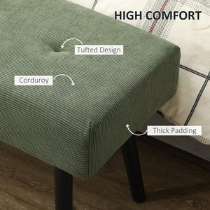 39" Upholstered Ottoman Bench, Corduroy Entryway Bedroom Bench with Padded Seat and Steel Legs for Bedroom, Green
