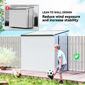 4.3' x 6.3' Outdoor Storage Shed Lean to Shed Outdoor Metal Tool Shed with Lockable Door and Air Vents, White