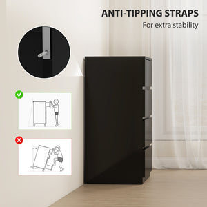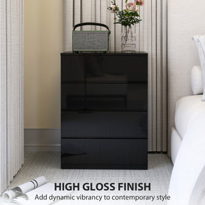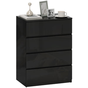 4 Drawer Cabinet, High Gloss Drawer Chest for Bedroom, Chest of Drawers with Metal Runners and Groove Handles, Black
