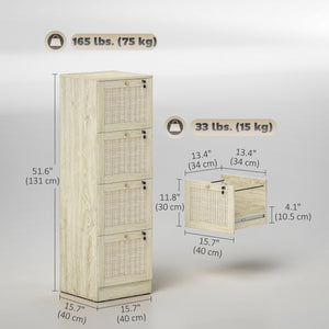 4 Drawer Filing Cabinet with Lock, Boho File Cabinet for A4 Letter Size Files with Decorative Rattan Accents, Oak