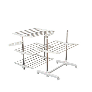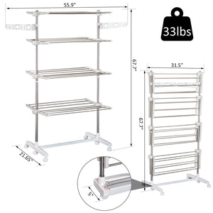 4 Layers Folding Laundry Rack Stand Dryer Storage Towel Rack Rolling