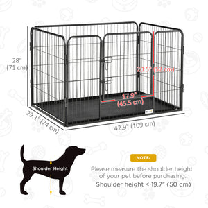 4 Panels Dog Playpen, Heavy Duty Dog Fence, 28" H Portable Pet Playpen with Door Double Locking Latches, Tray, Grey