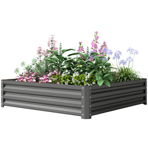 4' x 4' x 1' Raised Garden Bed Galvanized Steel Planter Box for Vegetables, Flowers, Herbs, Light Grey