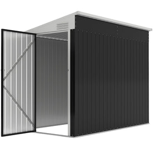 4' x 8' Outdoor Storage Shed Lean to Shed Outdoor Metal Tool Shed with Lockable Door and Air Vents, Dark Grey