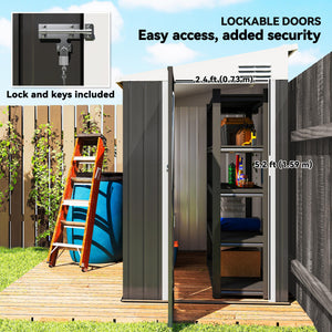 Constructed with steel tiles, the Homivas vertical storage shed is built to last and will keep your belongings safe from all kinds of weather. Like every storage shed from Homivas, this outdoor shed is easy to assemble and maintain. Its wide doors swing open for easy access to all your household belongings. The 2 air vents keep the interior cool and well-aerated. The garden tool shed fits neatly into even the smallest of yards.