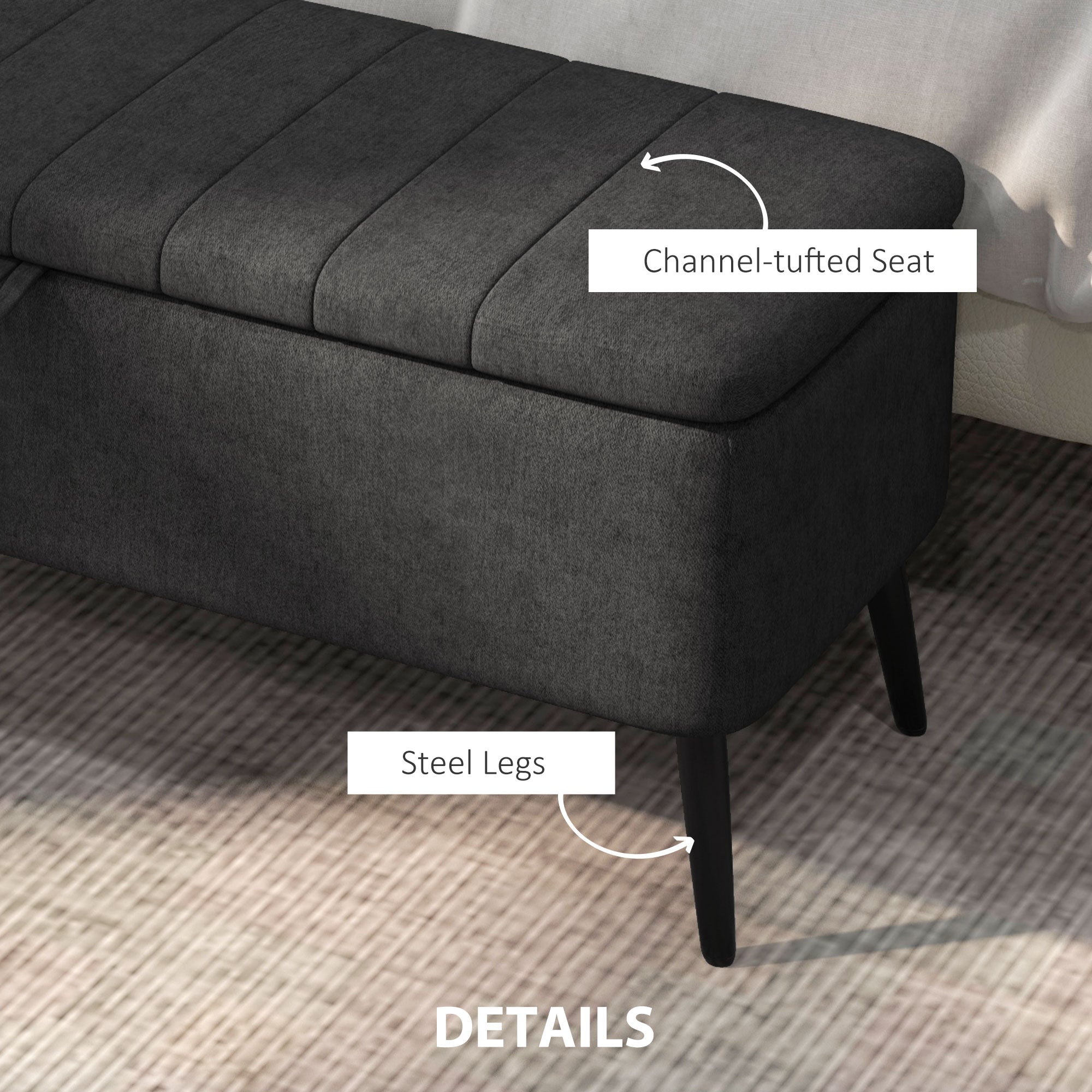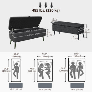 40" Ottoman with Storage, Linen Upholstered Storage Ottoman Bench with Steel Legs for Living Room, Bedroom Black