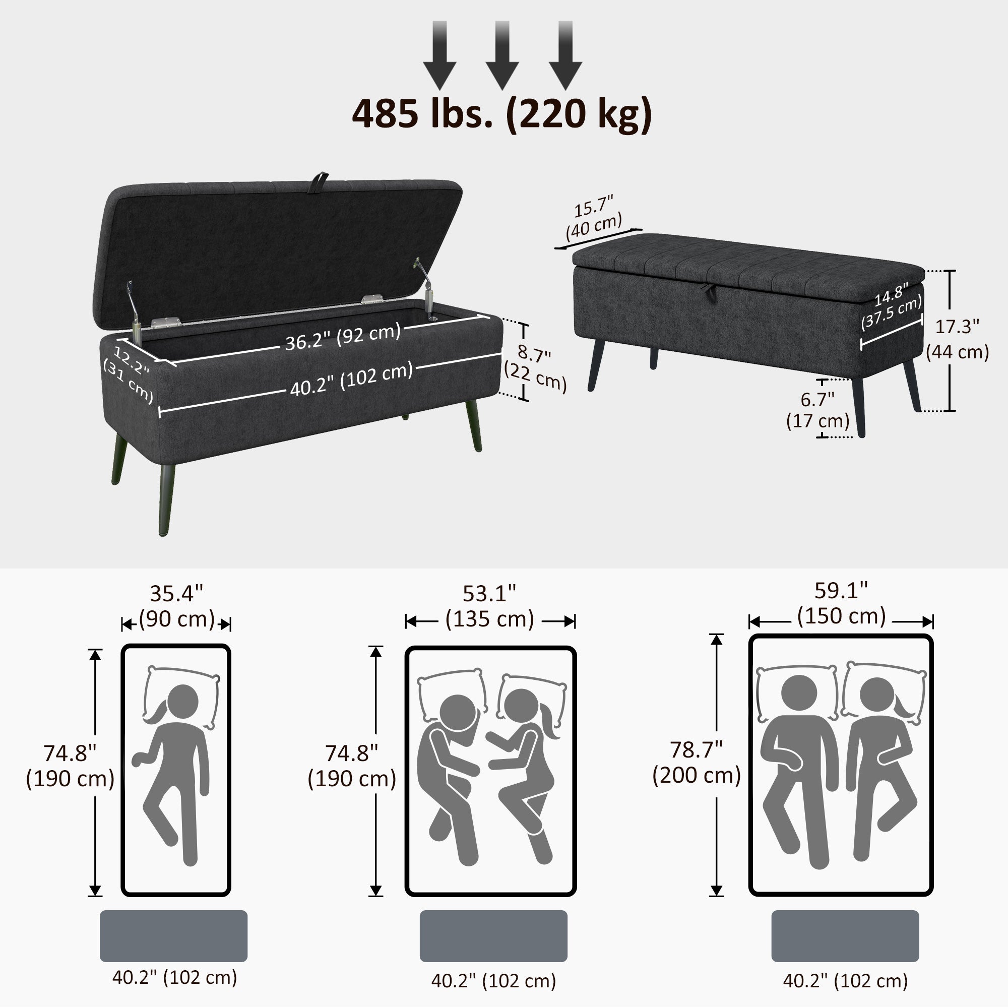 - • Overall Dimension: 40.2" W x 15.7" D x 17.3" H (102 x 40 x 44 cm)