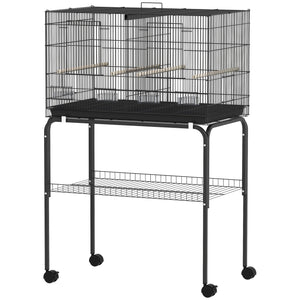 46" H Bird Cage, Large Parakeet Cage for Budgie, Lovebird, Canary, Finches with Divider, Black