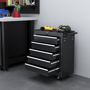 5 Drawer Roller Tool Chest, Mobile Lockable Toolbox, Storage Organizer with Handle for Workshop Mechanics Garage, Black